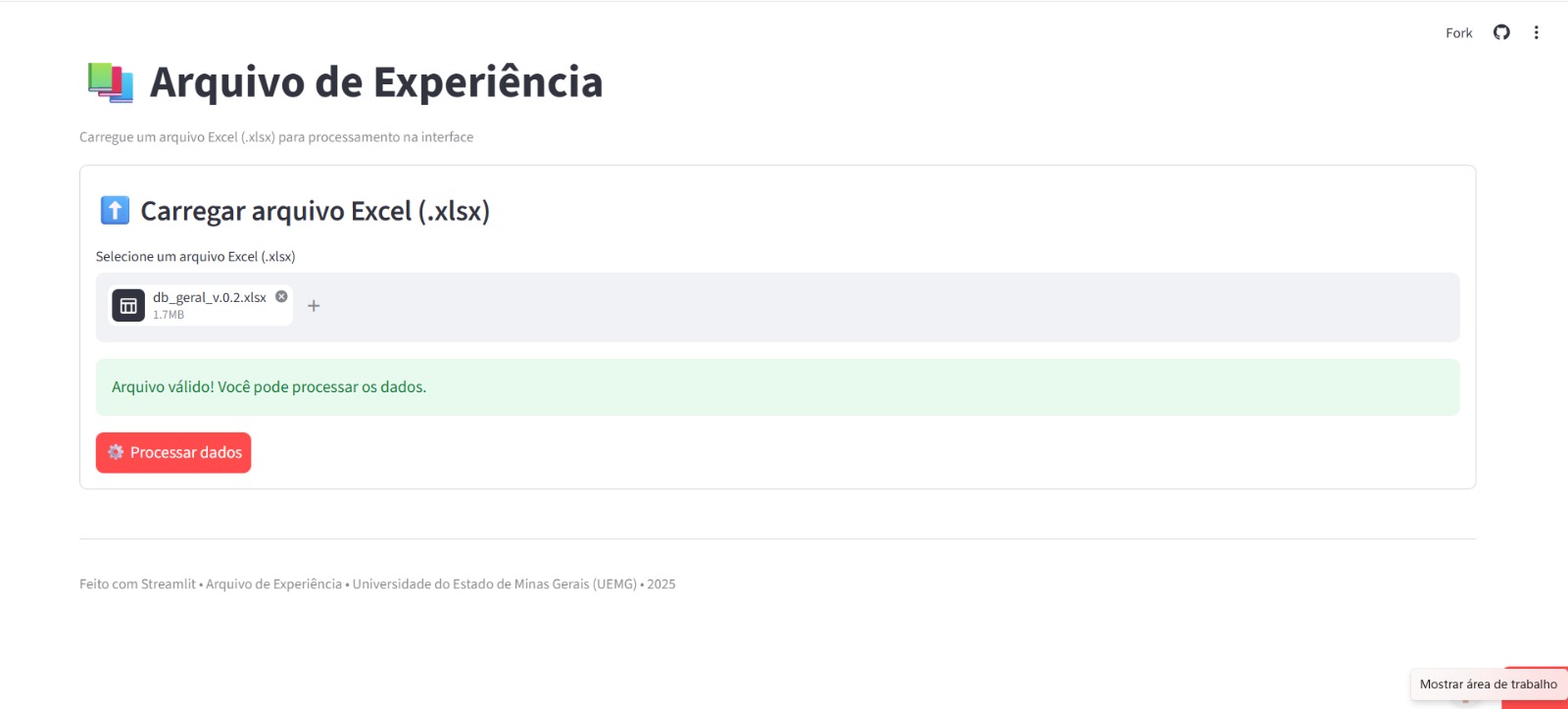 UNIVERSIDADE DO ESTADO DE MINAS GERAIS. Arquivo de Experiência: interface web desenvolvida com Streamlit. Frutal: UEMG, 2025.